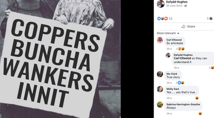 Like many hardcore sabs, Hughes’ convictions are fuelled by a flaming cocktail of extremism. He holds a strong hatred for the police – a view shared by other sabs like Gemma Barnes or Neal Buckoke. Hughes' own Facebook profile trumpets his subscription to ACAB, a registered hate symbol by the Anti-Defamation League which simply means “All Cops Are B*******”.